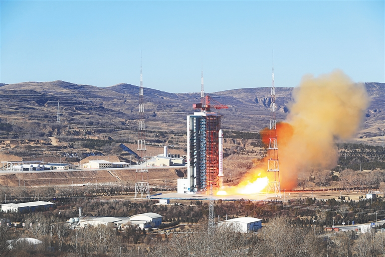 1月17日10时35分,我国在太原卫星发射中心用长征二号丁运载火箭,成功将试验十三号卫星发射升空,卫星顺利进入预定轨道,发射任务获得圆满成功。 新华社发(许春雷 摄)