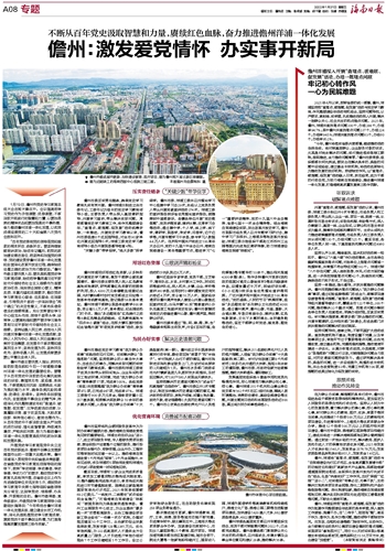 儋州洋浦用好用活红色资源,以多种形式开展党史学习教育,激发干部群众爱党爱国情怀。儋州市委主要负责人深入红色教育基地实地调研,研究部署红色资源的挖掘保护利用,投入4300万元修缮歃血结盟纪念园、光村镇泊潮村农村党支部成立旧址等一批革命传统教育基地,登记造册58处革命遗址。儋州洋浦干部群众现场体验教学600余场,受众逾5.3万人次,革命遗址、纪念园成热门打卡点。推出“永远跟党走”红色骑行之旅等8条红色精品旅游路线。红色教育基地与“四点半小课堂”结合,在那大镇石屋村胡松纪念馆等开展“听老党员讲故事”活动,参加活动的少先队员达8万人次。