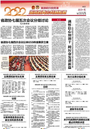 海南省第六届人民代表大会第五次会议~~~(2022年1月20日海南省第六届人民代表大会第五次会议主席团第一次会议通过)