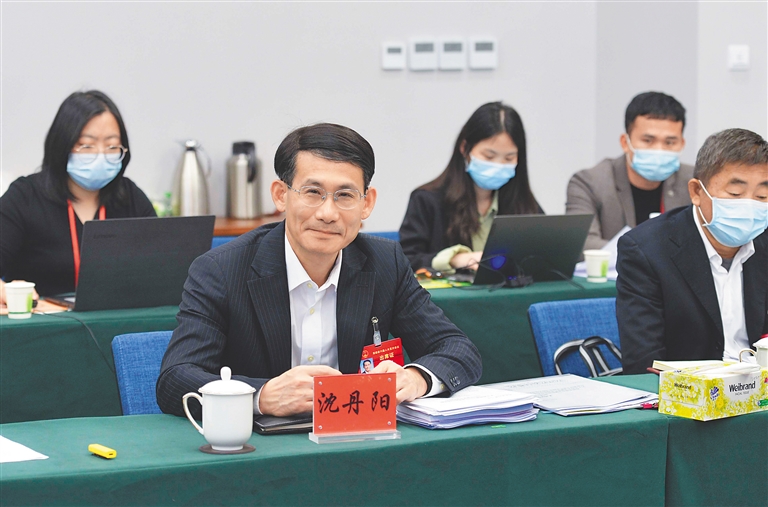 1月21日,参加省六届人大五次会议的代表分组审议政府工作报告。图为沈丹阳代表参加白沙代表团审议。本报记者 王凯 摄