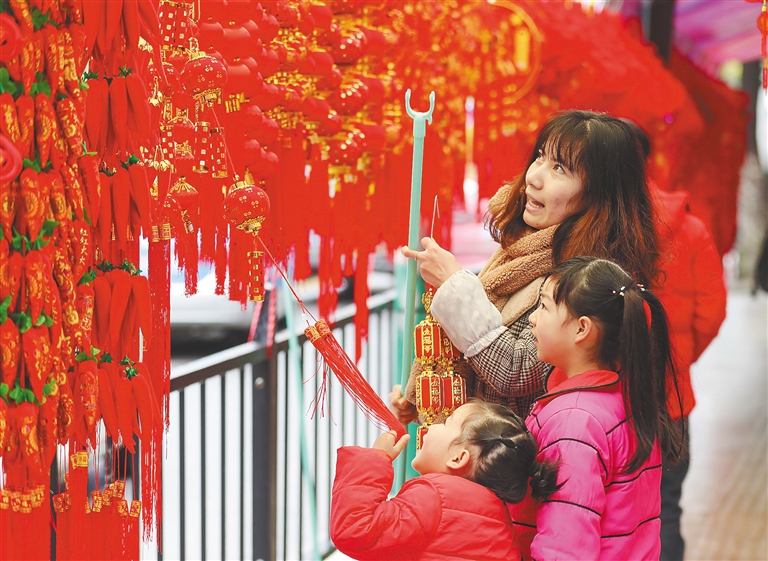 临近年关,各地年味渐浓,市民纷纷采买年货,大街小巷一派喜庆红火的景象。