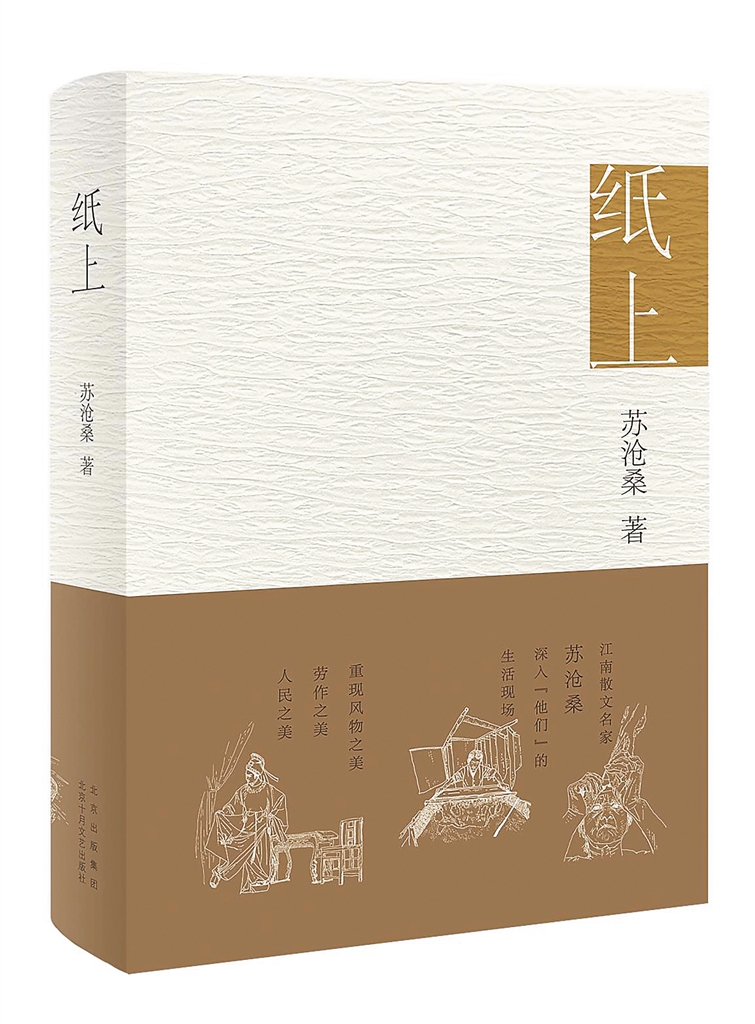 苏沧桑的散文集《纸上》置案头已月余,睡前读一篇,一个星期读完(七个单篇),复读而三。这是一本以描写蚕织、造纸、越剧、制茶、养蜂、酿酒、摇船等非物质文化遗产传承为主题的散文集,也是描写江南风物的别卷。