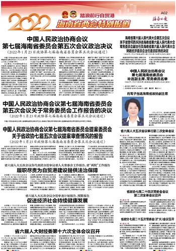 | 海南日报 2022踏浪前行自贸港海南省两会特别报道 002 2022-01-241 2022年01月24日 星期一 |