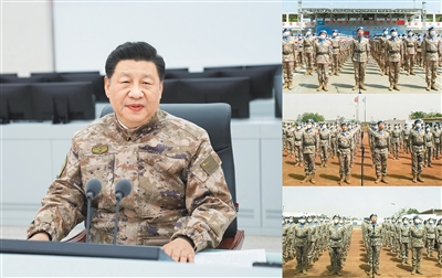 随后,习近平同中部战区海外维和分队进行视频通话。来自维和步兵营、工兵分队、医疗分队、直升机分队的同志们整齐列队,依次向习近平报告。习近平向他们,并向我军正在海外执行任务的全体官兵表示慰问。习近平强调,要忠实履行维和使命,为维护世界和平贡献更多中国力量,向世界展示中国军队良好形象。维和任务区环境复杂,要注意加强安全防范,搞好疫情防控。