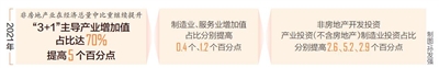 今年的省政府工作报告提到,非房地产业在经济总量中的比重继续提升,“3+1”主导产业增加值占比达70%、提高5个百分点,上缴其税收增长33.4%。