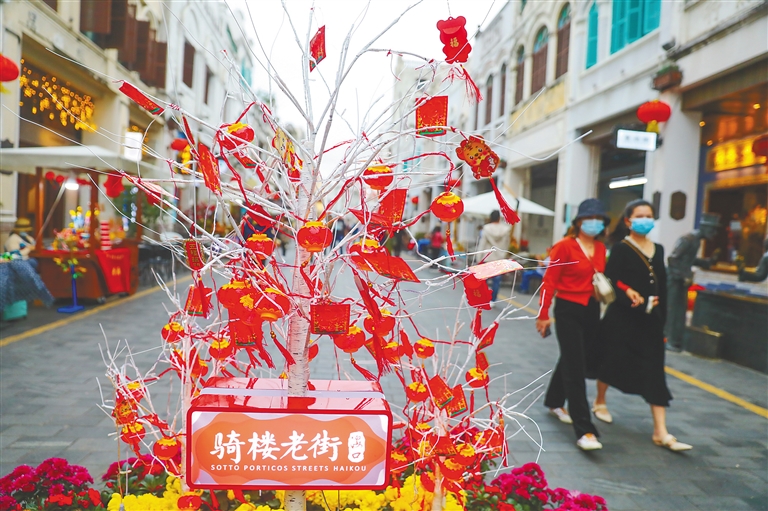 1月24日,海口骑楼老街中山路装扮一新喜迎新春佳节,吸引市民前来打卡。本报记者 张茂 摄