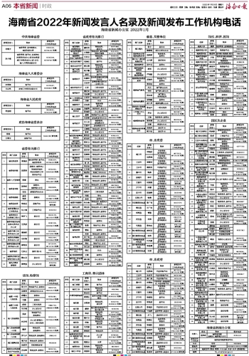 海南省2022年新闻发言人名录及新闻发布工作机构电话