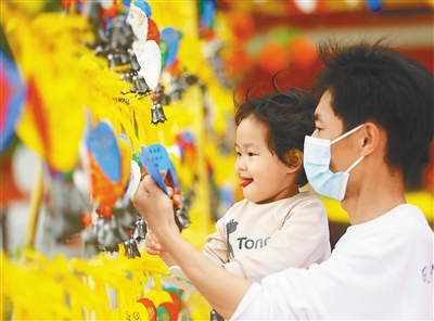 1月31日除夕,游客在三亚市南山文化旅游区挂心愿牌祈福新春。本报记者 武威 特约记者 陈文武 图/文