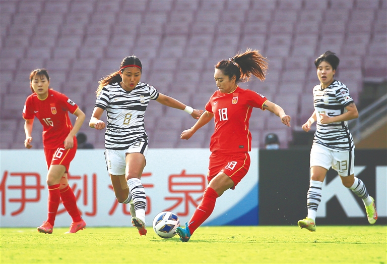 上半场结束前韩国队扩大了领先优势。补时阶段,中国队球员在防守时禁区内手球,来自澳大利亚的主裁判经视频确认后判罚点球。韩国队球员池笑然罚中,比分被改写为2:0。