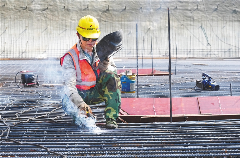 “还有一点儿就完了,焊完我再上来吃饭。”2月7日11时20分,三亚合联中央商务区项目现场,45岁的焊工熊新春还在一片绑扎好的钢筋台上忙着,一位工友催他赶紧去吃饭,熊新春这样说。