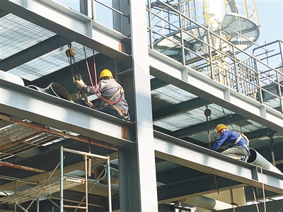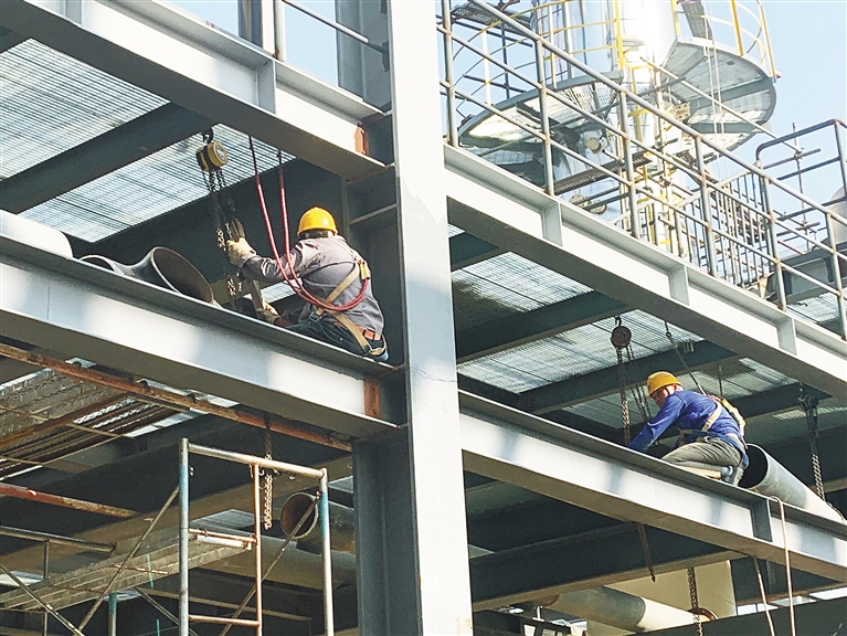 有的工人进行钢结构安装,有的工人进行设备找正,有的工人进行工艺管道预制,还有的工人安装工艺管道……在项目施工现场,470名工人奋战一线,现场繁忙而有序。