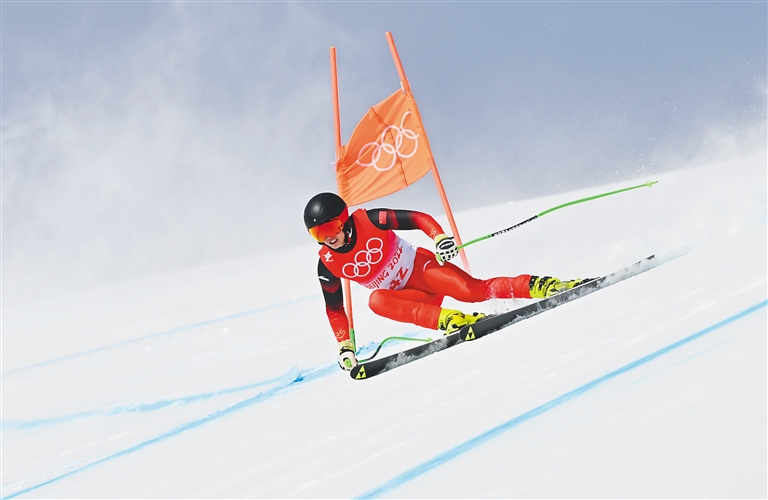 1分56秒93,徐铭甫成功完赛——7日,国家高山滑雪中心“雪飞燕”见证了中国高山滑雪运动员在冬奥会滑降项目上的突破。这是中国选手首次在冬奥会男子滑降比赛中完赛。图为徐铭甫在比赛中。新华社发