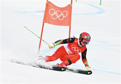 2月7日,在北京2022年冬奥会高山滑雪女子大回转项目比赛中,中国选手孔凡影获得第40名,这是中国该小项自温哥华冬奥会以来的最好成绩。图为孔凡影在比赛中。 新华社发