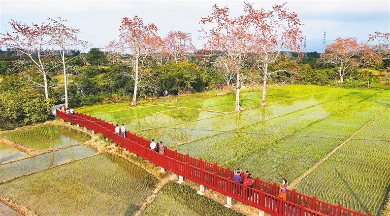 目前,正是昌江黎族自治县木棉花火红绽放的时节。2021—2022海南昌江“冬登春赏”黄金旅游季系列旅游文化活动正在如火如荼地进行中,吸引了全国各地的游客前来赏花、打卡。本报记者 陈元才 通讯员 杨耀科 图/文