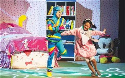 忽而躲在冰箱里,忽而蹦到了床上,忽而又藏在了衣柜里……演出现场,罐头小人滑稽的动作、角色间幽默的对话不时引起孩子们哈哈大笑。