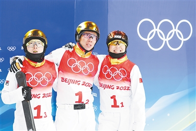 自由式滑雪空中技巧混合团体项目要求每队由三名选手组成,其中至少包含一名不同性别的选手。此次中国队派出的三位选手均为冬奥会“四朝元老”:索契冬奥会女子空中技巧亚军徐梦桃、平昌冬奥会男子空中技巧亚军贾宗洋、曾经的“世界难度第一人”齐广璞。