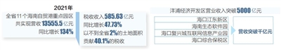 营收实现翻番。去年,11个海南自贸港重点园区实现营业收入13555.5亿元,同比增长134%。其中,洋浦经济开发区营业收入突破5000亿元大关。海口江东新区、海南生态软件园、海口复兴城互联网信息产业园、海口综合保税区进入“营收千亿元俱乐部”。