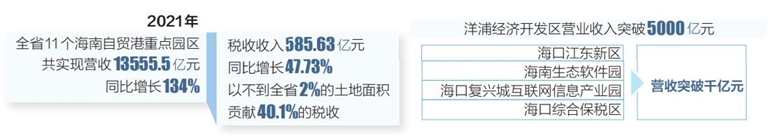 本报海口2月12日讯(记者傅人意 通讯员许瑞恒)作为自由贸易港政策的主要承接地和先行先试的孵化器,产业园区正推动海南自由贸易港建设高质量发展。海南日报记者2月12日从省发展改革委获悉,2021年,全省11个海南自贸港重点园区共实现营收13555.5亿元,多个重点园区跻身“营收千亿元俱乐部”,交出了一份精彩答卷。