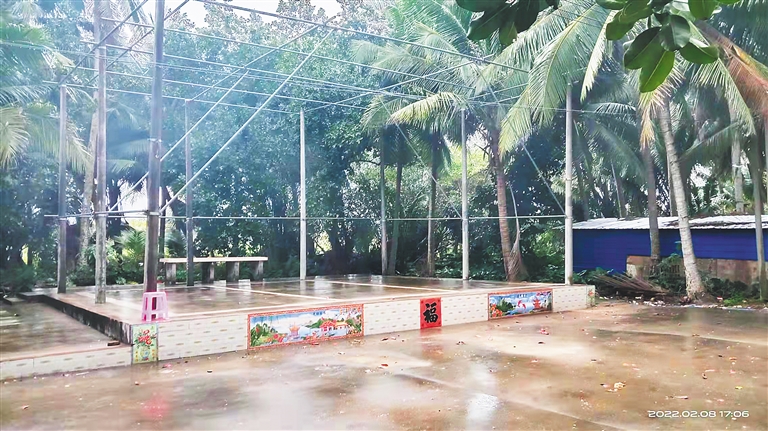 乡村戏台土味浓。椰林下,稻田边,人们寻一片开阔的空地,垒起土石台,在台上搭起简单的框架,便成了一处露天戏台。