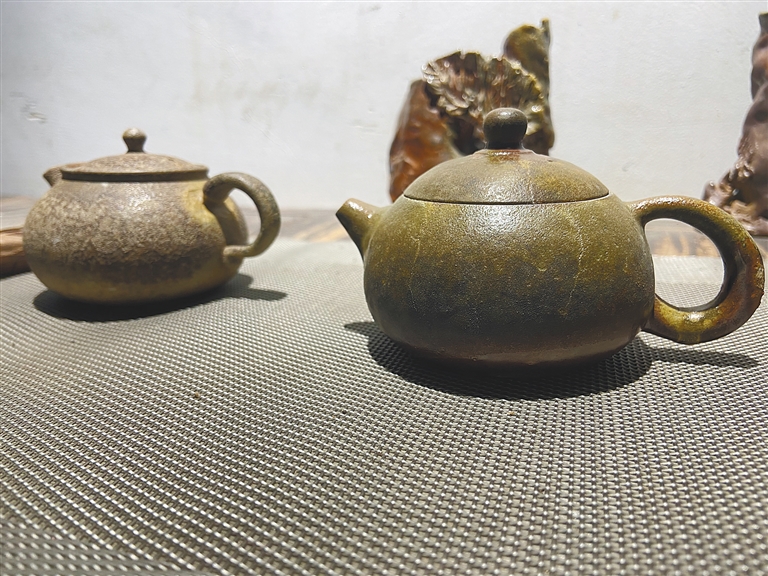 “柴烧器物造型简练,我们在制作的过程中注重保留手工的痕迹和陶土的原始肌理,不给坯体上釉。”杨丹说,以柴烧的方式烧陶,对日期的选择比较随意,攒够能装满一窑的陶坯时,便可入窑、封窑、烧窑,不会像烧汝窑瓷器那样为了烧出天青色而等烟雨天气。柴烧的灰烬产生的落灰釉,使陶器呈现出粗犷的质感、朴拙的色泽。