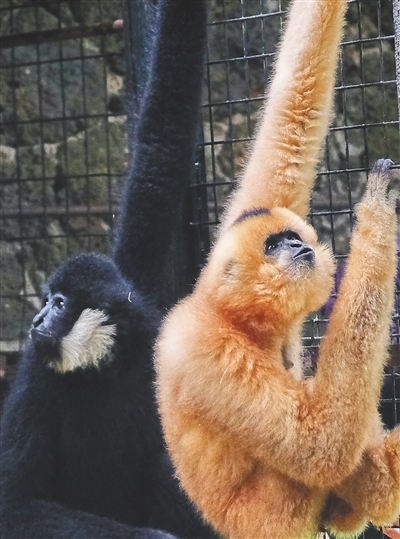 本报海口2月14日讯 (记者习霁鸿 邓海宁)2月14日上午,在海南热带野生动植物园(以下简称海野),从浙江杭州动物园远道而来的雌性北白颊长臂猿“命大”与雄性北白颊长臂猿“亮亮”合笼。这意味着两园联合进行的北白颊长臂猿繁殖工作更进一步。