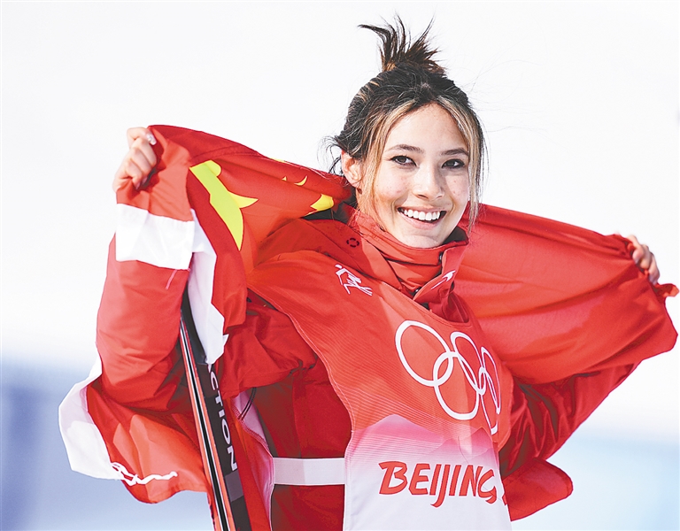 实现突破也有谷爱凌的功劳。当日她夺得自由式滑雪女子坡面障碍技巧银牌,她和苏翊鸣在本届冬奥会上均已有1金1银入账。