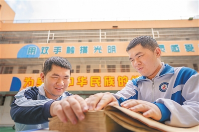 海南(海口)特殊教育学校学生手捧盲文新书阅读。 本报记者 袁琛 实习生 张芷毓 图/文