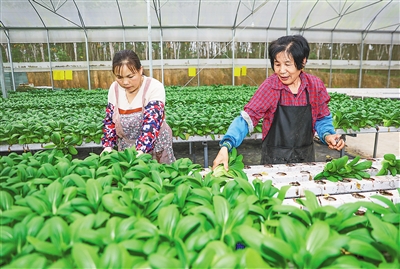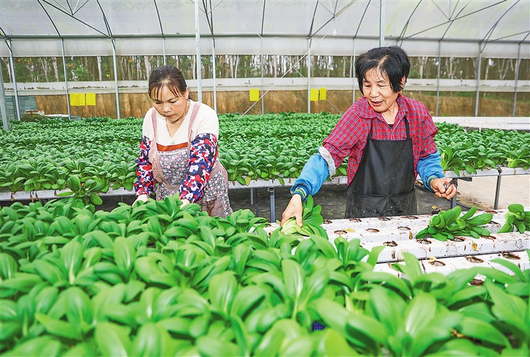 2月17日,在琼中黎母山镇无土栽培菜篮子基地,工人采摘蔬菜。