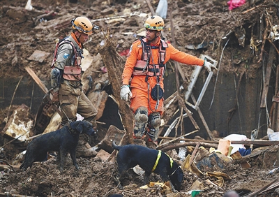 巴西里约热内卢州历史名城彼得罗波利斯市15日以来遭遇暴雨灾害。里约热内卢州消防部门16日说,彼得罗波利斯市15日骤降暴雨引发多起山体滑坡,多条道路被暴涨的河水淹没,造成的死亡人数目前已升至94人,预计死亡人数还会继续上升。新华社/法新