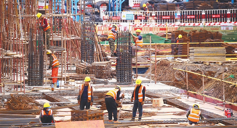 近日,人大附中海口实验学校中学部项目施工现场,一派热火朝天的景象。目前,该项目初中、高中教学楼正进行地上主体施工作业,整个项目已经完成投资1亿元,计划今年完成投资6亿元。