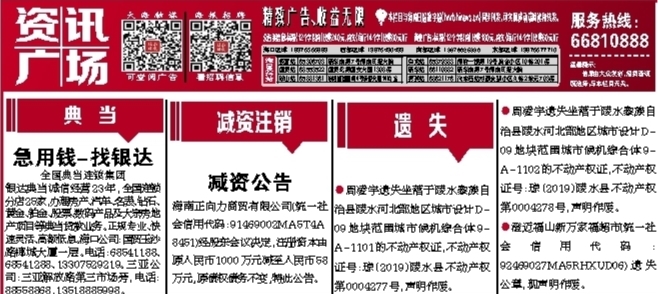 银达典当诚信经营23年,全国连锁分店25家,办理房产、汽车、名表、钻石、黄金、铂金、股票、数码产品及大宗房地产项目等典当贷款业务。正规专业、快速灵活、高额低息。海口公司:国贸玉沙路椰城大厦一层。电话:68541188、68541288、13307529219。三亚公司:三亚解放路第三市场旁,电话:88558868,13518885998。