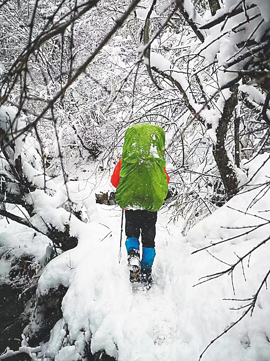 在预期之外的,还有数不清的爬坡路。每次身处陡坡,几十斤重的行囊犹如巨壳,压得他喘不过气来。