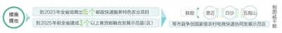 措施提出,到2023年将邮政普遍服务委代办局(三沙除外)所占比降至3%以下,全省培育出15个邮政快递服务特色农业项目;到2025年前全省建成3个以上客货邮融合发展示范县(区),基本实现全省乡镇有综合寄递物流服务中心,实现有条件的建制村邮件快件收投服务基本全覆盖等工作目标。