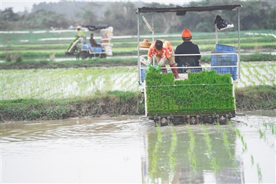 “机械插秧就是快,以前一亩地一个人要干一天,现在机械作业20分钟就插完了,省时又省力!”种植大户赖树林告诉记者,今年他承包了100多亩农田,全部用于种植早稻,他看好机械化育秧插秧技术,所以早早同合作社谈拢了合作。