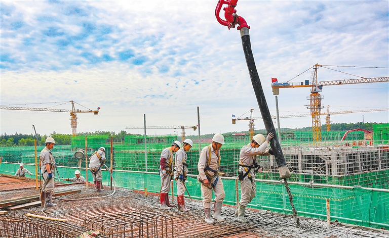近日,位于洋浦的海南巴陵石化新材料有限公司十七万吨/年苯乙烯类热塑性弹性体项目现场,工人紧张有序地施工。本报记者 陈元才 摄