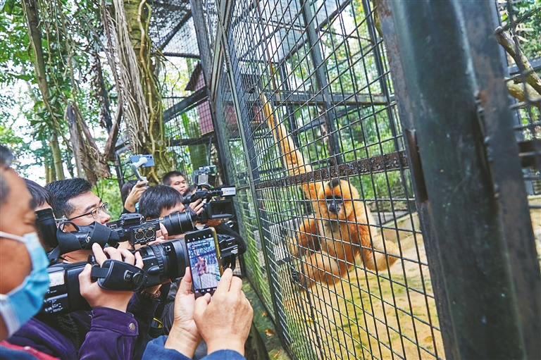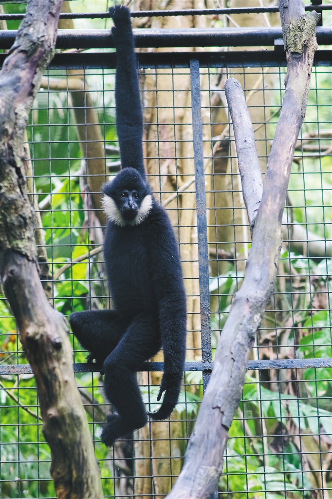 二猿合笼还有更深的意义。白颊长臂猿和海南长臂猿同为灵长目长臂猿科冠长臂猿属。对亮亮和命大的研究,将为保护海南长臂猿提供更多经验。
