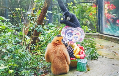 这对夫妇就是海南热带野生动植物园(以下简称海野)近日备受关注的明星眷侣:8岁的雄猿亮亮与7岁的雌猿命大,均为国家一级保护动物白颊长臂猿。2月14日,亮亮迎娶来自杭州动物园的命大,二猿合笼的消息一度刷屏海南人民的微信朋友圈。