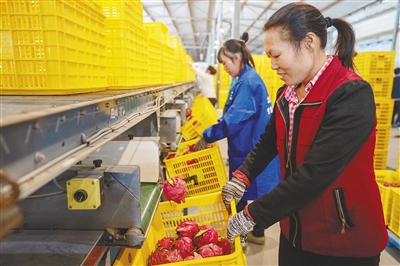 ② 2月24日,乐东火龙果种植基地的加工厂内,农户分拣火龙果。本报记者 袁琛 实习生 张芷毓 图/文