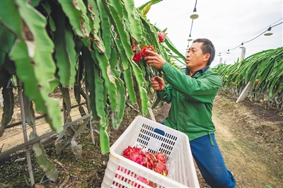 ① 2月24日,在乐东火龙果种植基地,农户采摘火龙果。