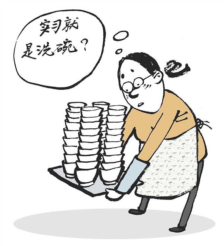 学烹调与营养专业的,被安排到酒店洗碗;学旅游管理专业的被安排去酒店做保洁;学广告设计专业的被安排去电子厂拧螺丝……近日,媒体报道了职校学生的实习情况,发现很多学生被“错配”实习,有不少学生吐槽:“实习过程除了累,并没有什么实质性收获。”