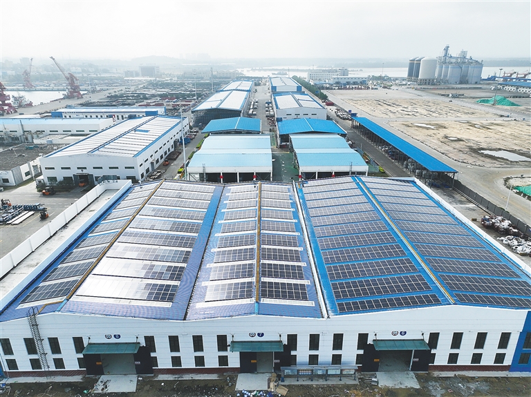 “目前,马村港区码头共铺设太阳能光伏板约4万平方米,总装机容量4兆瓦,投运后平均每年可提供505万千瓦时绿色清洁电力,完全满足该码头日常生产用电需求。”海南中海石油码头有限公司副总经理常户星说说。相比同等规模的燃煤发电量,这个电站每年可减排二氧化碳4065吨,为经济发展注入“绿色动力”。