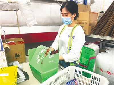“这种可以回收的绿色包装快递箱我还是第一次见,现在是疫情防控的关键时期,这样的送货方式不仅解决了纸箱、包装袋不好处理的问题,更能减少接触带来的传染风险。”2月22日,在海口市美兰区一小区的居民王华海说。记者在京东澄迈电子商务产业园一个仓库内看到,王华海口中的“绿箱子”整齐摆放在打包员的一侧。“用‘绿箱子’打包,不仅快速,还能有效降低耗材的使用。”打包员李向灼说,与传统的纸箱打包相比,这种方式只需在开口处粘贴运单,需用户亲启方能拆箱,确保快递安全送达。