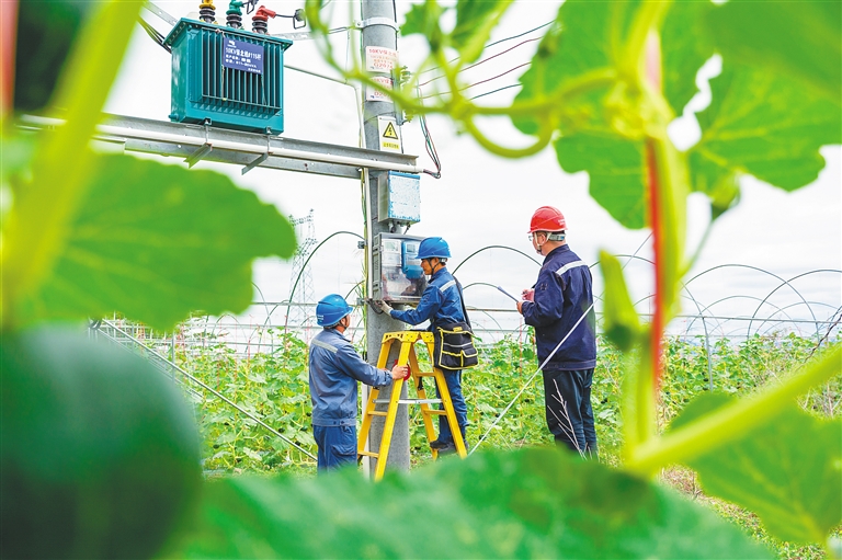 当天,三亚供电局结合南繁基地科研任务需求,组织崖州供电所党员服务队走田间、查隐患、上门服务实地了解农科人员用电需求,确保农业科研正常生产用电。图为工作人员检查供电设备并检修线路。