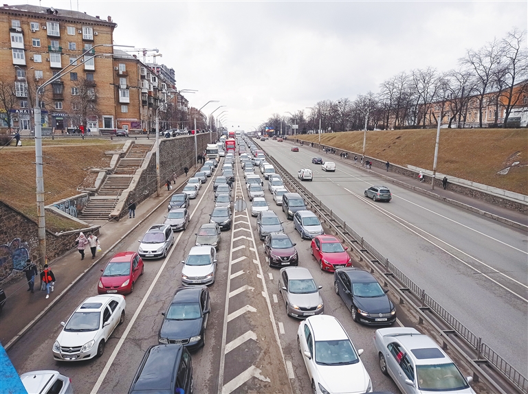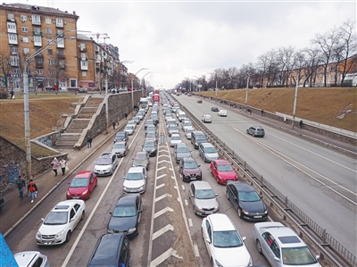 基辅:出城的道路交通拥堵,大量居民外逃