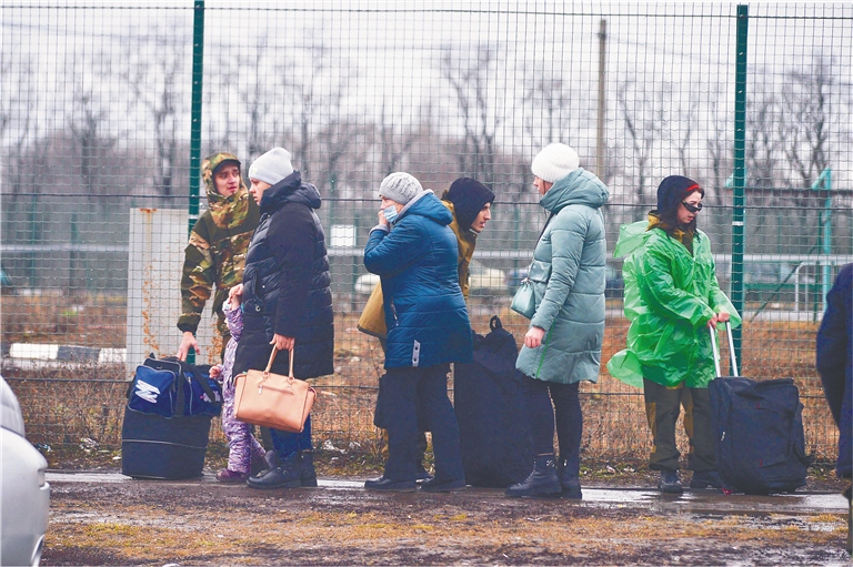 2月24日,来自顿巴斯地区的难民通过一处边境检查站进入俄罗斯罗斯托夫州。 新华社发