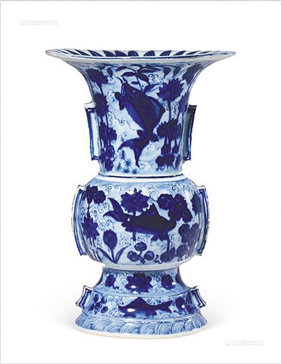 青花鱼藻纹出戟尊,明嘉靖时期的作品,现藏北京故宫博物院。