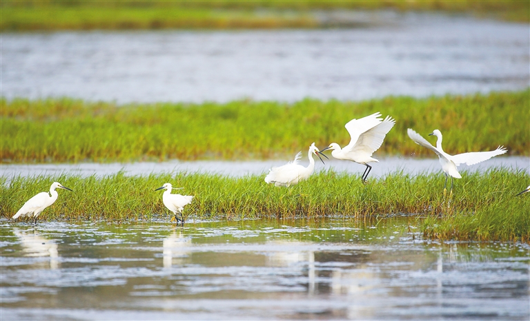 目前,海南昌江海尾国家湿地公园(试点)边界处设立了界碑、界桩和交通指示牌,园区已完成1800亩湿地水面修复,园区内的林木种植、园林化打造已基本完成。随着公园生态保护力度的加大,越来越多的鸟类出现在人们的视野里。本报记者 李天平 摄