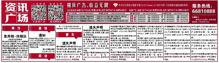 ●李平不慎遗失海南雅居乐房地产开发有限公司开具的房款收据,收据编号:雅海0067920,金额:997293元,声明作废。