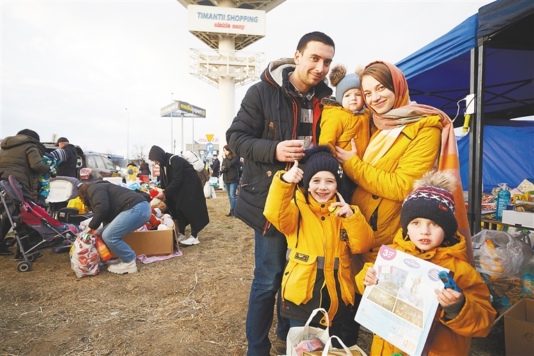 由于乌总统发布全国总动员令禁止18至60岁男性公民离境,记者看到逃难的乌克兰人几乎全是妇女和儿童。她们拿着各色行李,提着刚领到的食品和其他物品。经历逃难艰辛,她们很多都不愿意面对记者的镜头和话筒,直到记者遇到刚和丈夫团聚的尤利娅。