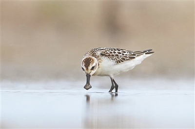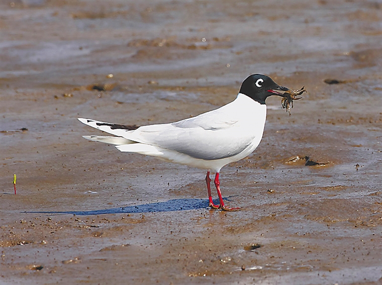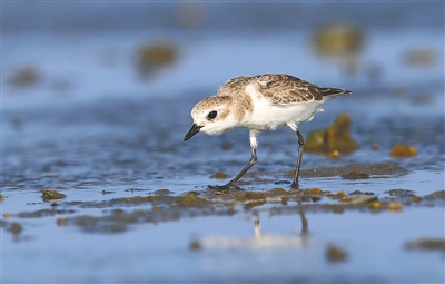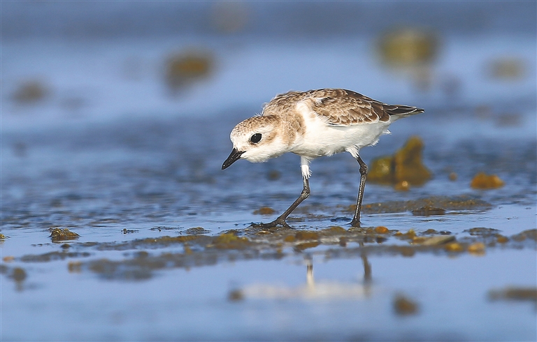 冬日的文昌市清澜港一带,每当潮水退去,海滩上会出现一些螺、螃蟹及来不及撤回海里的小鱼。这时,远道而来饥肠辘辘的蒙古沙鸻便会迅速降落在滩涂上,饱餐一顿,享受大自然带给它们的美味。